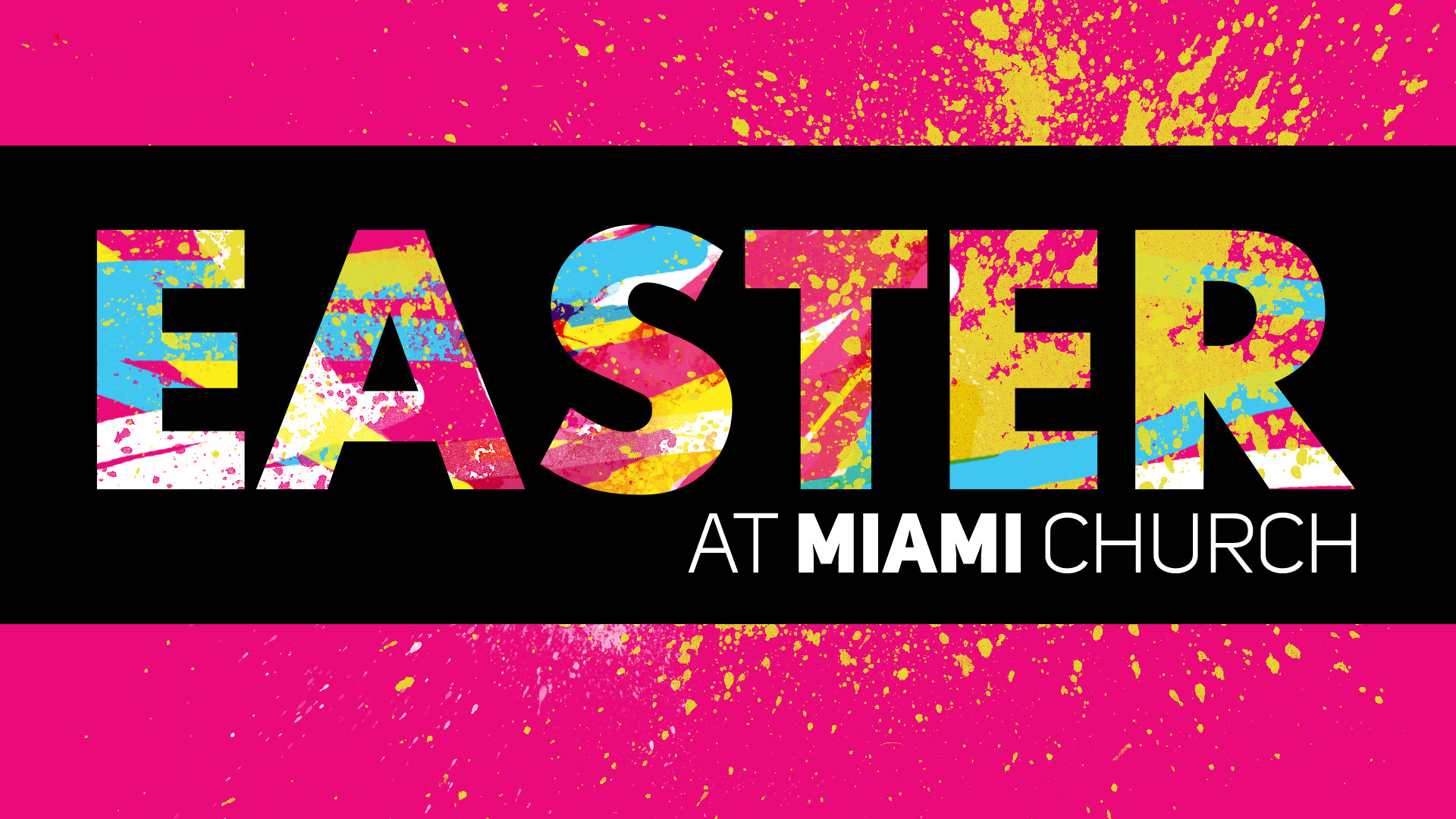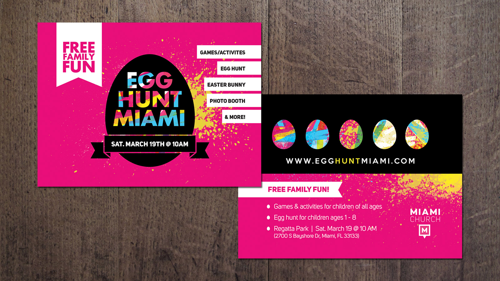 Easter slides (main & scripture) and Easter Egg Hunt promo card.